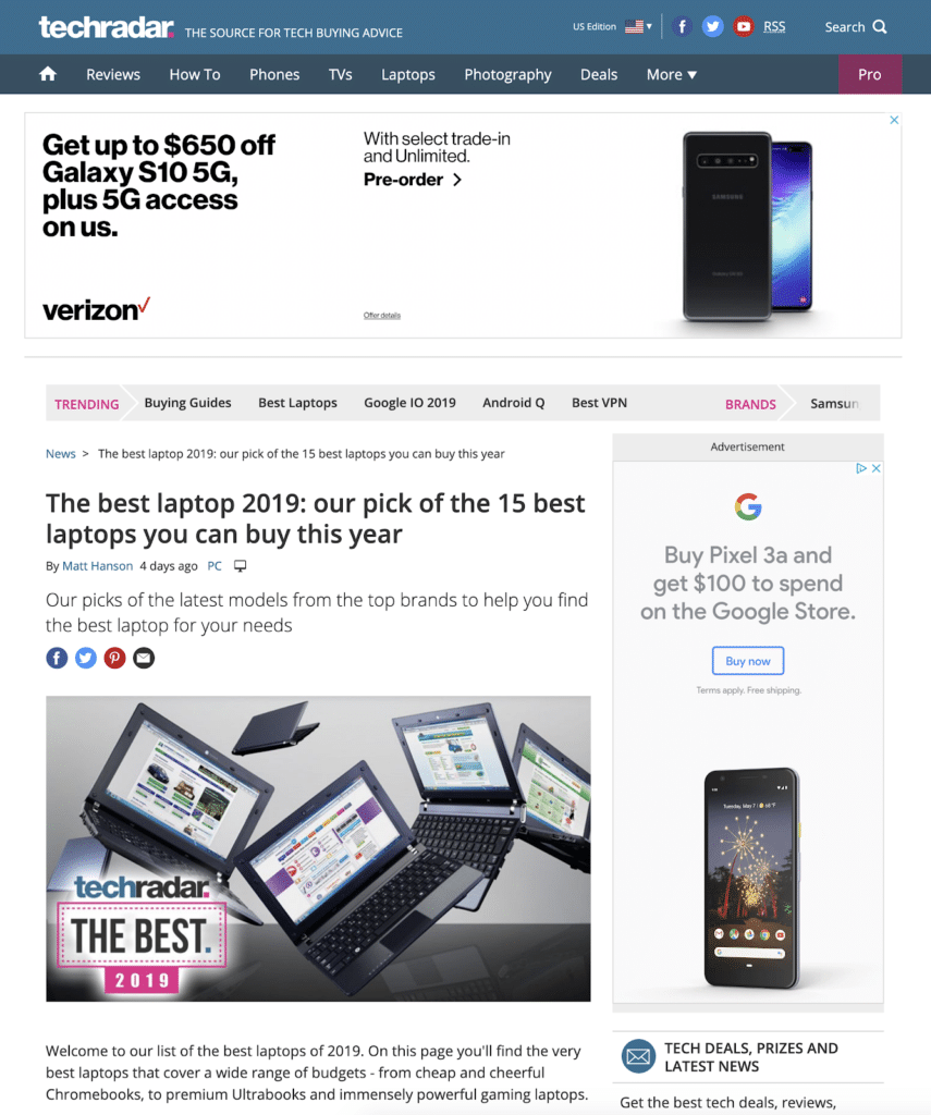 Techradar also has an ad above the page content, which probably isn’t helping matters.